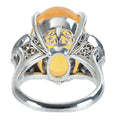 11.1ctのメキシコオパールは、やや透明感に劣るものの、光の加減によってグリーン、イエロー、オレンジなどの斑(ふ)を浮かび上がらせます。石座は、今では見ることのない熟練の職人による手作業によるもの。