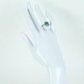 エメラルドの品質は、色合い、透明度、テリとも中間的なランクです。指輪の外側にスリキズ、小傷などがあります。
