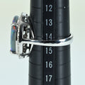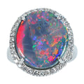 7.89ctプレート状のブラックオパールは、うっすらと「カン」が入っているのが確認できますが、青黒い地色にパープル、ブルー、グリーン、イエロー、オレンジ、ピンクなどの斑(ふ)を浮かびあがらせます。