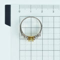 0.397ctの名ダイヤモンドは、ライトイエローカラーほどの色合いで、ルーペレベルで観察してもインクルージョンなどの欠点が見当たらない、輝きのある石です。アーム部にセットされた飾りダイヤモンドも上質品がセレクトされています。