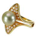 【中古】K18YG PEARLパールリング 10.6mm D0.40ct 8.4g #11.5