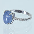 5.86ctのスターサファイアは、ややアステリズム(スター)の出方はやや弱いものの、濃く美しい地色と透明感が魅力です。