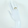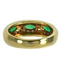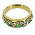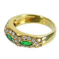 マーキスミックスカット3ピースのエメラルドと、32ピースのダイヤモンドをセットしたゴールドリングです。エメラルドは、やや淡めのグリーンカラーで、肉眼でもインクルージョンが確認できる石ですが、ダイヤモンドは上質品がセレクトされています。