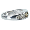 トータル0.60ctセットされている天然ライトブラウンカラーダイヤモンドは、肉眼ではインクルージョンの確認が困難な、輝きのある石です。メインダイヤモンドは、爪を使用せず、レール留めという方法で留め、洋服をひっかけたりしないようつくられています。