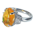 4.53ctのメキシコオパールは、透明度の高い淡めのオレンジカラーで、光の加減によって、グリーン、イエロー、オレンジ、ピンク、レッドなどの斑(ふ)を浮かび上がらせます。美しい遊色効果をお楽しみください。
