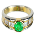 【中古】K18YG/PT900 EMERALD エメラルドリング E0.98ct D0.93ct 11.4g #15