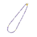 濃淡織り交ぜたアメジストで組みあげたネックレスです。アメジストの透明感と美しい色合いをお楽しみください。