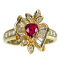 ペアーシェイプミックスカット0.58ctのルビーは、濃く鮮やかなレッドカラーで肉眼ではインクルージョンがあまり気にならない、テリのある上質な石です。