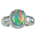 1.65ctのブラックオパールは、濃淡のブルー、グリーン、イエロー、オレンジ、ピンクと見る角度や光の加減によって斑(ふ)模様を大胆に変化させる上質品。鮮やかな遊色効果をお楽しみください。