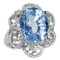 13.31ctのサファイアは淡めの色合いではあるものの、すばらしい透明感とテリのある個性的な石です。大粒サファイアの醸し出す個性的な存在感をお楽しみください。