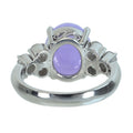 11.3mm×8.9mmサイズのラベンダーヒスイは、よく見ると色ムラが見受けられるものの、美しい色合いで表面に油を垂らしたようなテリのある石です。ヒスイの両サイドのセットされたダイヤモンドも上質品です。