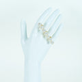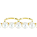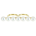 7ピースの上質パールを直線的に配した個性的なダブル―フィンガーリング。アヴァンギャルドなのにエレガント、タサキならでは価値をお楽しみください。指輪のハラの部分に浅いスリキズがあります。