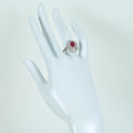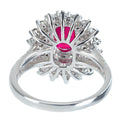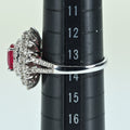 1.35ctのビルマ産ルビーは、「AIGS」という鑑定機関によれば最高級品質の「ピジョンブラッドカラー(鳩の血の色」。リング本体は、ルビーを3重に取り巻いた上、アーム部にかけてぎっしりダイヤモンドをセットしたゴージャスかつ華やかなデザインです。