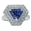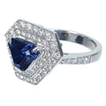 スリランカ産4.08ctのサファイアは、僅かにパープルがかった深いブルーカラーで、透明感、テリtも抜群の石です。サファイアの周りからアームにかけてぎっしりとちりばめられたダイヤモンドも上質品セレクトです。