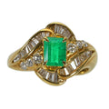【中古】K18YG EMERALD エメラルドリング E0.77ct D0.81ct 7.1g #13
