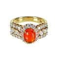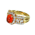 1.19ctのメキシコオパールは、濃いめのオレンジカラーの地色に、グリーン・イエローの斑(ふ)を浮かび上がらせる透明度の高い上質品。オパールの周りからあーむにかけてセットされたダイヤモンドも上質品です。