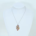 ピンク、オレンジ、イエロー、グリーン、ブルーなど色とりどりのサファイアをセットしたペンダントネックレスです。