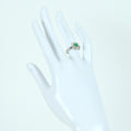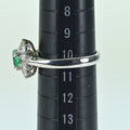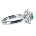 0.56ctのエメラルドは、淡めのグリーンカラーですが、透明感、テリとも申し分の石です。エメラルドん周りをトータル0.56ctのメレダイヤモンドで取り巻いた華やかなデザインに仕上げられています。メレダイヤモンドは、カラー、クラリティにややばらつきが見受けられます。