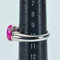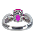 This platinum ruby ​​ring is designed by Tsukasa Muramatsu. The oval cabochon-cut ruby ​​is a luster stone with a pinkish hue.