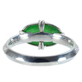 The 3.25 carat jadeite is a slightly pale green with little color unevenness and a good luster. The unique design, with the jadeite set horizontally, is also an appealing point.