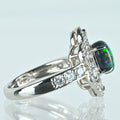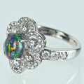 1.21ctのブラックオパールは、地色が濃い瑠璃色で、濃淡のブルー、グリーン、イエロー、オレンジ、ピンクと、見る角度や光の加減によってモザイク状の斑(ふ)模様を大胆に変化させます。すばらしい遊色効果をお楽しみください。