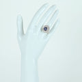 スリランカ産2.69ctの非加熱サファイアは、よく見ると内包物が確認できるものの、深いブルーカラーで、テリのある石です。リング部分が石座に対して斜めに取り付けられていて、より指に沿わせて着けることができます。