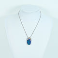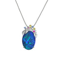 13.45ctの大粒ブラックオパールは、紺の地色に、グリーン、ブルーの斑(ふ)を鮮やかに浮かび上がらせます。カラーサファイアによる加飾もアピールポイントです。