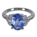 4.18ctのサファイアは、明るく淡いブルーカラーで、透明感、テリのある素晴らしい石です。付属の鑑別カードに「非加熱」と記載されています。