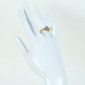 9.4mm×7.0mmサイズのブラックオパールは、青黒い地色にブルー、グリーン、イエロー、オレンジ、ピンクなどの斑(ふ)を鮮やかに浮かび上がらせます。ハンドメイドでつくられたリング本体もアピールポイントです。