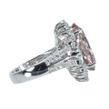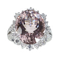 13.80ctのクンツァイトは、淡めのピンク色で、ルーペレベルでも内包物が気にならない、テリのある石です。クンツァイトの周りとアーム部にセットしたトータル1.66ctのダイヤモンドも上質品です。