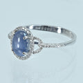 2.632ctのスターサファイアは、やや地色が淡めではあるものの、透明感があり、ハロゲン光など強い光の下ではくっくりとアステリズム(スター)を浮かび上がらせます。