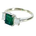 1.18ctのエメラルドは、それほど透明感が高いわけではありませんが、深く美しいグリーンカラーが魅力です。リング本体は、エメラルドの両サイドにトータル0.65ctのエメラルドカットダイヤモンドを配した、シンプルかつエレガントなデザインに仕上げられています。