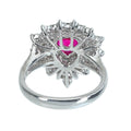 ハートシェイプミックスカット1.39ctミャンマー産ルビーは、透明度では少し劣るものの、鮮やかなレッドカラーで、素晴らしいテリのある石です。ルビーの周りを飾ったダイヤモンドも上質品です。