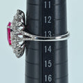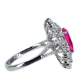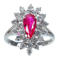 1.22ctのビルマ産非加熱ルビーは、よく見ると肉眼でも内包物が確認できるものの、鮮やかなピンキッシュレッドカラーで、テリのある上質な石です。縦長のペアーシェイプという形状を生かしたデザインに仕上げられています。