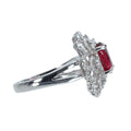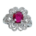 2.10ctモザンビーク産非加熱ルビーは、深く鮮やかなレッドカラーで、透明感のある上質な石。ルビーの周りを飾ったダイヤモンドも上質な石がセレクトされています。