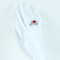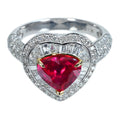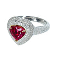 2.10ctハートシェイプカットの非加熱ルビーは、鮮やかなピンキッシュレッドーカラーで、透明感、テリとも申し分のない上質品。ルビーを取り巻いたダイヤモンドも上質品がセレクトされています。