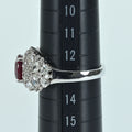 2.07ctマダガスカル産非加熱ルビーは、よく見ると肉眼でも内包物が確認できるものの、深く鮮やかなレッドカラーが特徴の石です。ルビーの周りを飾ったトータル1.22ctのダイヤモンドも上質品がセレクトされています。