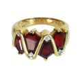 4ピース計5.24ctセットされたガーネットは、暗めの褐色ですが、透明感、テリのある石です。ゴールドとガーネットが織りなす幾何学的なコントラストが印象的です。