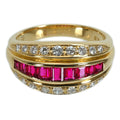 バゲットカットのルビーを横一列にセットしたシンプルかつシャープな印象のデザイン