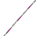 7ピースのルビーをセットしたパーツと、3ピースのダイヤモンドをセットしたパーツを交互につなぎ合わせた、K18ホワイトゴールドブレスレットです。ルビー、ダイヤモンドとも上質な石がバランスよくセレクトされています。