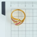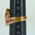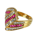 Zラインを基調としたゴールドリングは、ルビーとダイヤモンドを交互にレール留めしたゴージャスなデザイン。ボリュームがあるので中指用としてもおススメです。