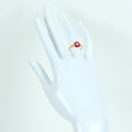 4ピース計0.79ctセットされているマーキスカットルビーは、いずれも鮮やかなレッドカラーで、透明感、テリとも申し分のないものがセレクトされています。4ピースのマーキスカットルビーをサークル(円環状にセットしたモダン&シンプルなデザインをお楽しみください。